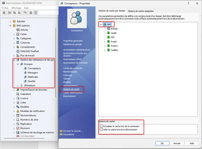 Un Administrateur PDM peut décider du paramétrage du cache local pour les utilisateurs ou les groupes, cela peut déclenche deux actions automatiques :