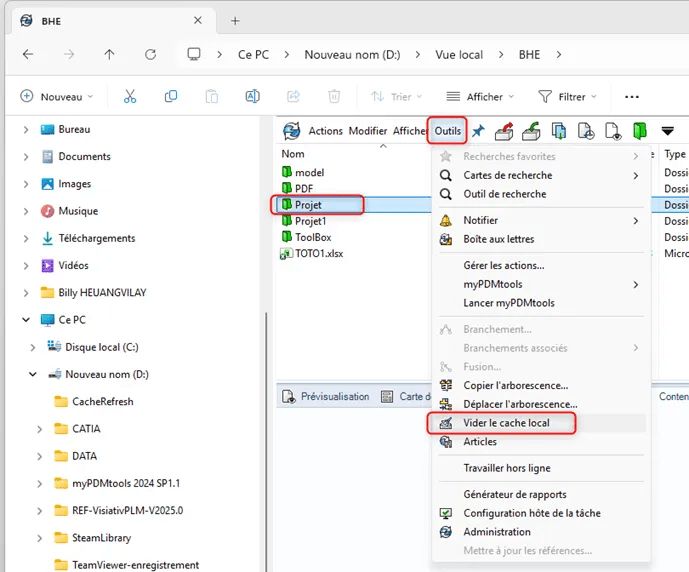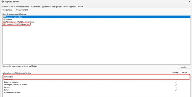 Pour une utilisation optimale du cache local nous recommandons de donner le contrôle total Windows à la vue locale PDM.