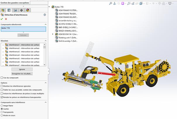 La version 2025 de SOLIDWORKS ajoute la possibilité de détecter les interférences entre pièces dans le mode « Gestion des grandes conceptions » avec ou sans l’option « Editer l’assemblage ».
